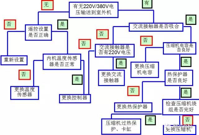 单相压缩机启动电路:因单相异步电机无启动力距,因此多数采用电容分相,在启动绕组上串联一电容来达到获取启动力距目的,当压缩机电容损坏时,压缩机就无法启动。