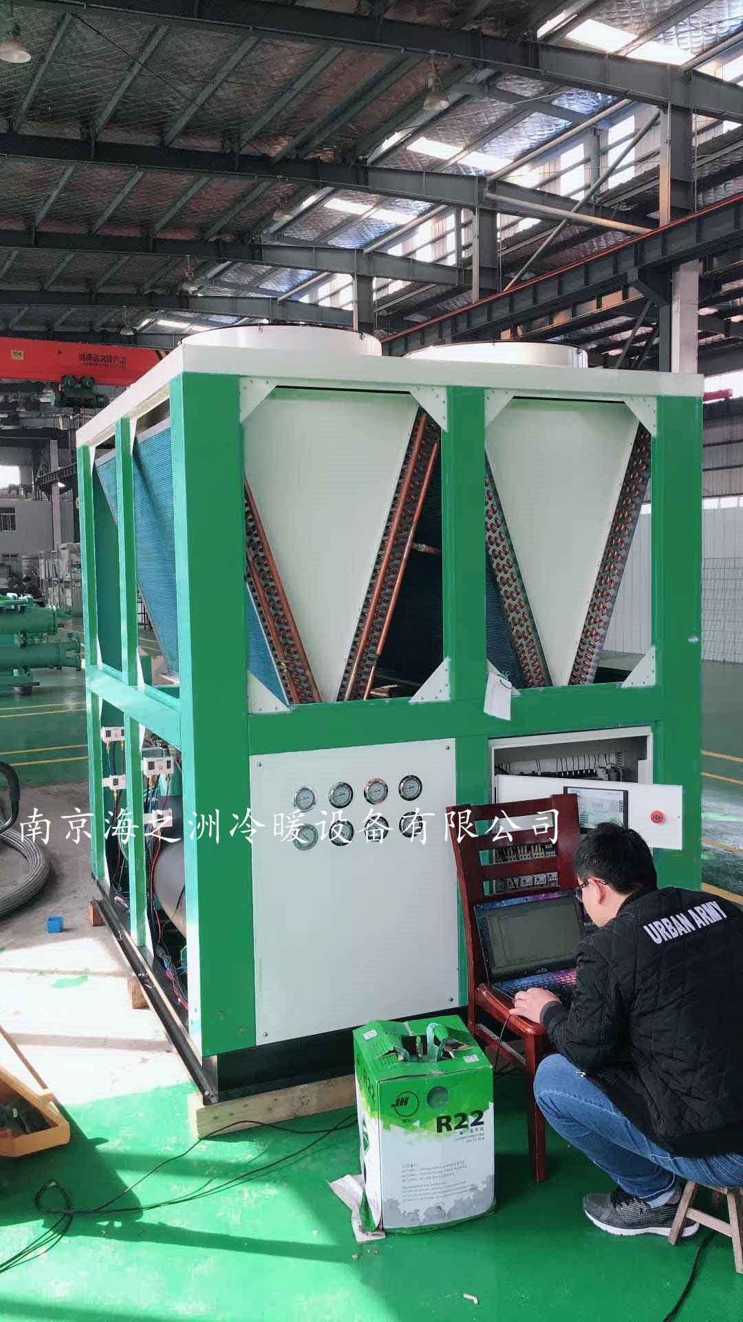 冷冻水水管的连接,按出厂时已设置的标签所示连接,一般情况下,单机头水冷机的入口靠近氟侧接口那头,双机头的入水按出厂时已设置的标签。蒸发器进出水管已装好温度传感器,从电脑手动操作器面板上,可以直接读出进、出水温度。蒸发器出水管已装好水流开关,无需再安装其他水流连锁装置。