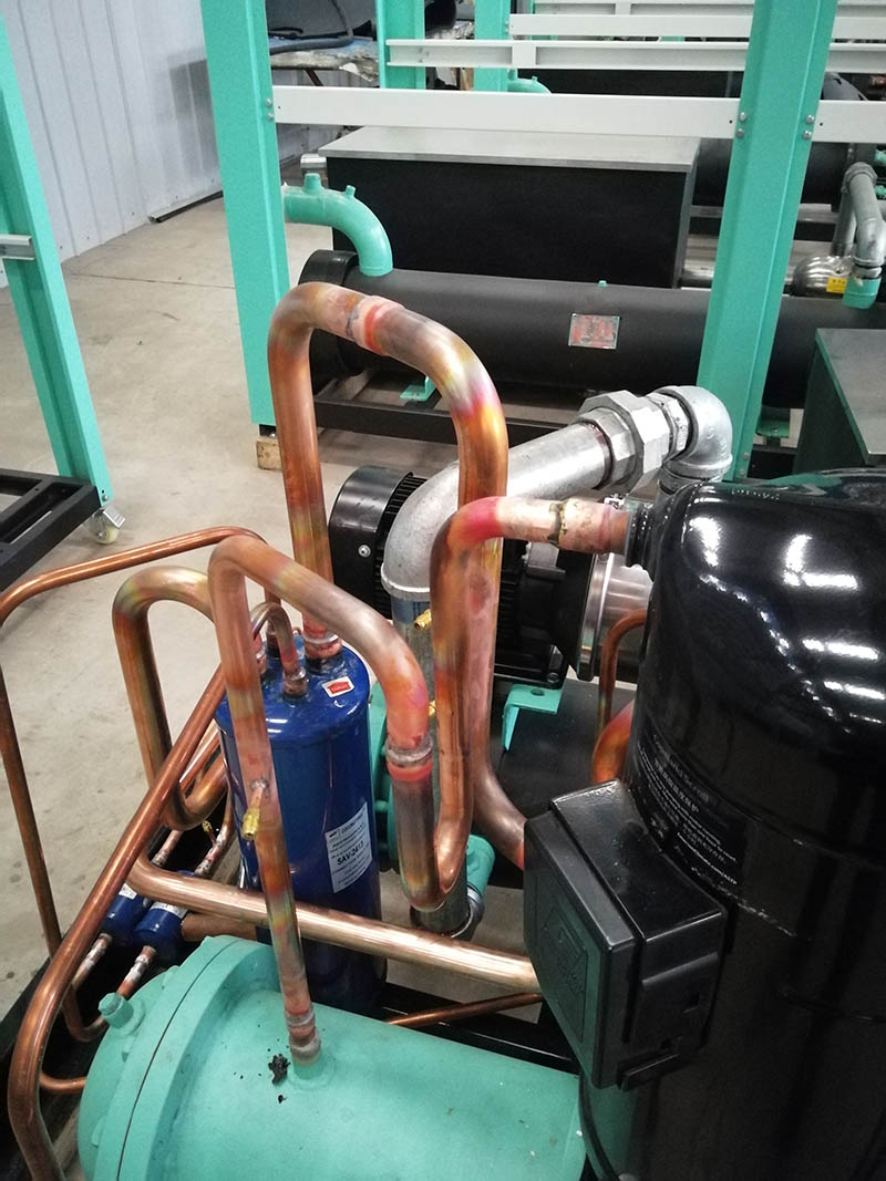 4. 便于安装:在工厂内已完成全部的部件安装,运行测试,并已加注制冷剂及冷冻油,用户只需进行水路及电路的联结即可投入使用,方便用户使用。