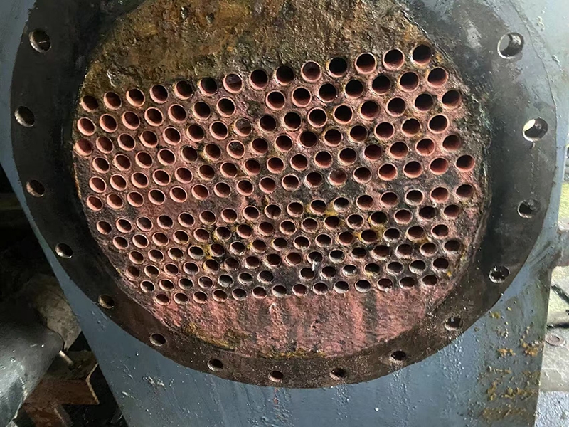 中央空调机组冷凝器结有水垢会导致压力高、排气温度增加,机组高压保护设备启动,使中央空调自动停机。此外,冷却水进出水的温差低于2~2.5℃,换热效果差,制冷量下降,耗电量上升;冷却塔有菌藻和水垢生成,堵塞冷凝器管路,高压停机。