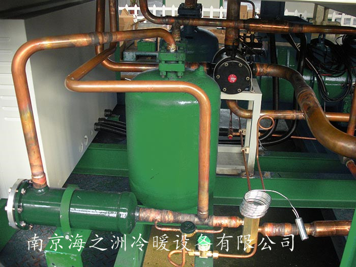 3、压缩机油加进冷却器中,加油量应保持在视油镜的1/2~3/4,处不应加满;