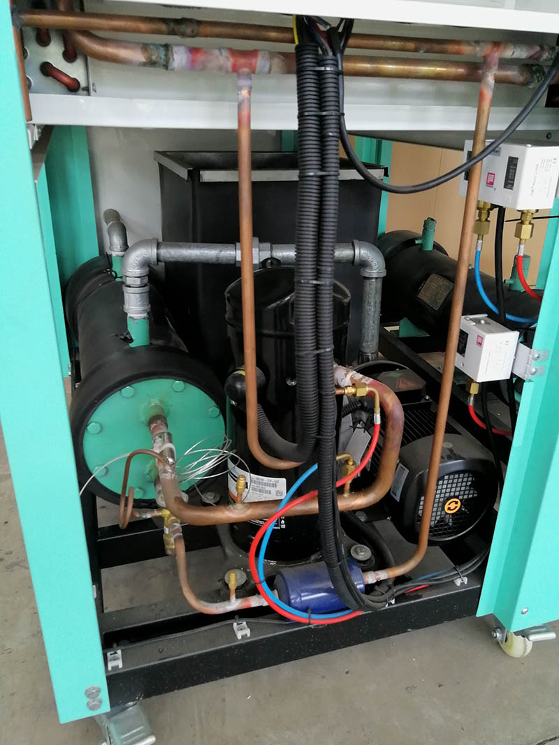 ★可使用乙二醇溶液作载冷剂。冷冻水出水温度可控制-15℃以 下. 出水温度7℃零下30℃可调,因此需添加25-50%的乙二醇等防冻液作为载冷剂方可使用!