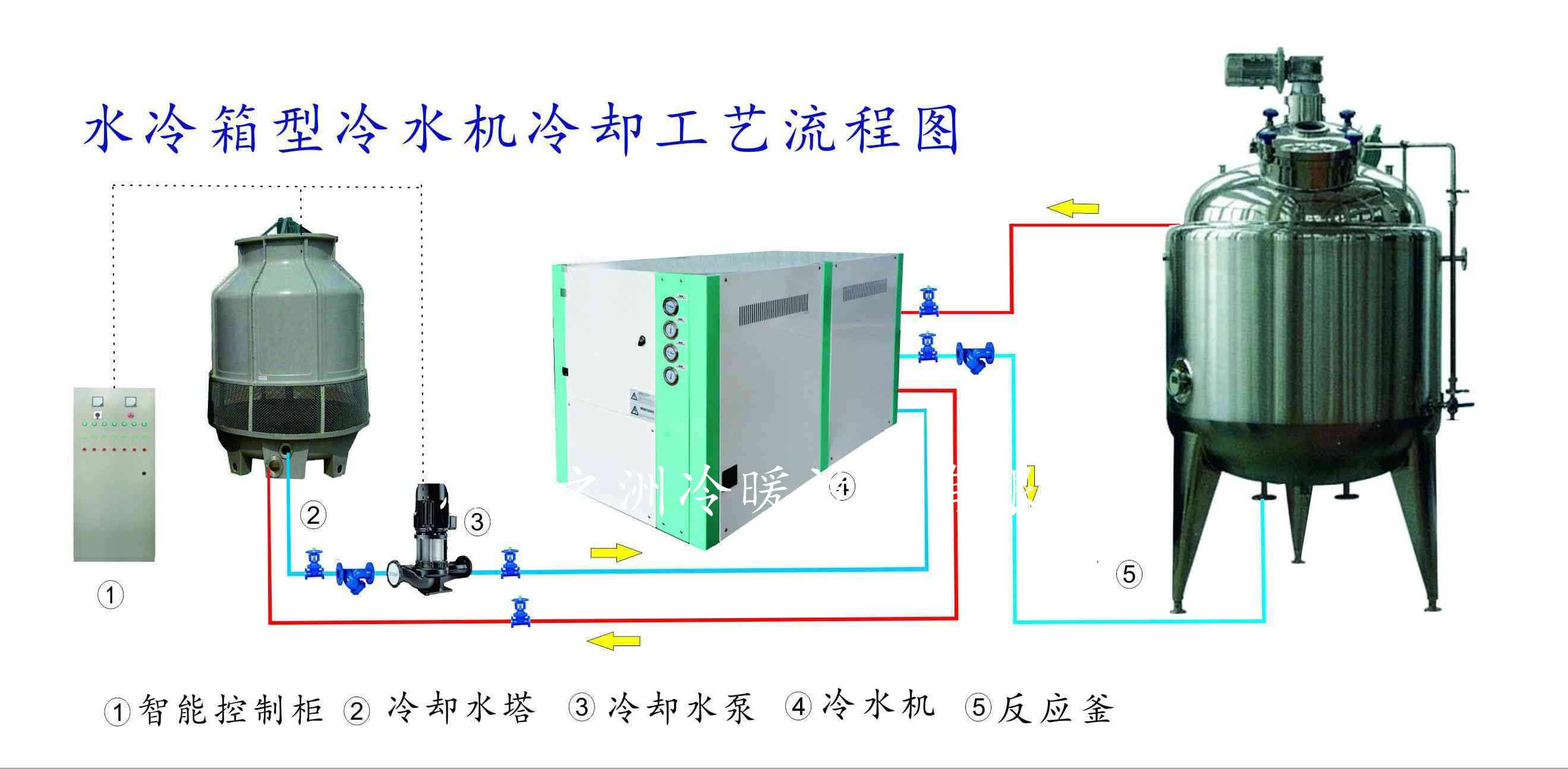 变频式水冷螺杆式冷水机组--使用工艺流程图:
